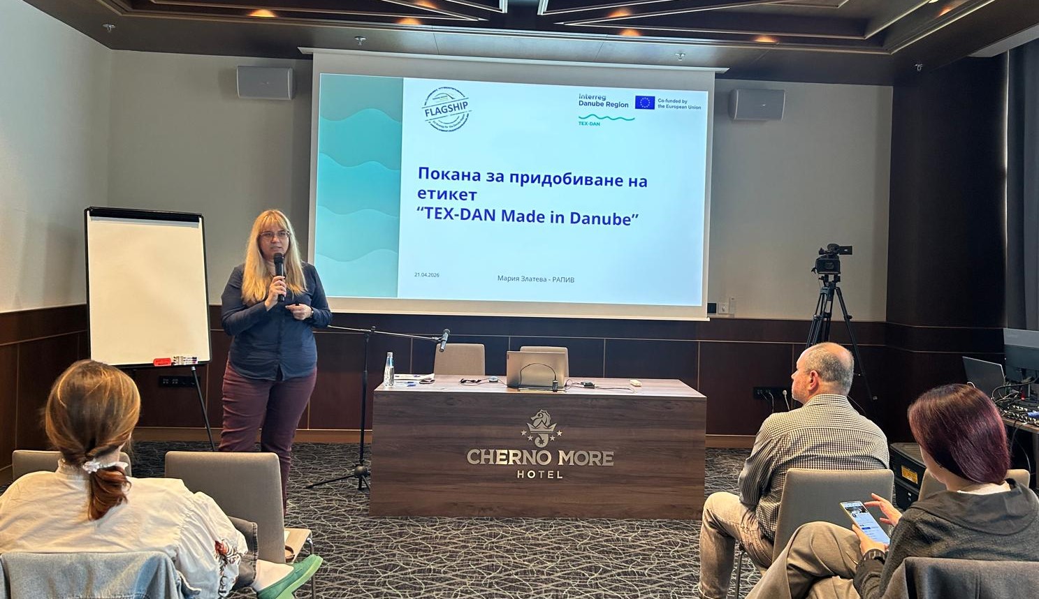 TEX-DAN: Национално събитие посветено на кръговата икономика в текстилния и модния сектор На 21 април 2026 г. в хотел „Черно море“ – Варна се проведе националното събитие „Кръгова икономика в текстилния и модния сектор: решения, партньорства и практически стъпки за бизнеса“, организирано от Регионална агенция за предприемачество и иновации – Варна (РАПИВ) в рамките на проект DRP0200164 TEX-DAN – „Към кръгова верига на стойност в текстилната и модната индустрии“, съфинансиран по Програма Интеррег Дунавски регион 2021–2027. Събитието събра представители на компании от текстилния и модния сектор, фирми от веригата на доставки, експерти, образователни институции и други заинтересовани страни, обединени от общата цел да обсъдят реални възможности за по-устойчиво развитие на сектора, внедряване на кръгови решения и изграждане на нови партньорства. Фокус върху практическите възможности за бизнесаОсновен акцент в програмата беше поставен върху това как компаниите могат да се подготвят за преход към по-устойчиви и кръгови модели на работа, какви са възможностите за внедряване на дигитални и устойчиви решения и какви конкретни ползи могат да бъдат постигнати за бизнеса. В рамките на събитието РАПИВ представи основните резултати по проект TEX-DAN, както и дейностите, реализирани в подкрепа на малките и средните предприятия в сектора. Беше представена и отворената покана за фирми за придобиване на етикет „TEX-DAN Made in Danube“, която има за цел да насърчи компаниите към по-видимо ангажиране с принципите на кръговата икономика и устойчивото развитие. Представяне на компаниите, участвали в инициативата „Ваучери за преход към кръгова икономика“Особено място в програмата беше отделено на представянето на компаниите, включили се в инициативата „Ваучери за преход към кръгова икономика“. Участниците имаха възможност да се запознаят с конкретни примери от практиката, свързани с предизвикателствата, предприетите стъпки и постигнатите резултати от работата на компаниите в посока по-устойчиво развитие. Представянето на тези примери даде реална перспектива за това как дори малки и средни предприятия могат да направят първи стъпки към въвеждане на кръгови принципи в своята дейност, когато имат подходяща експертна подкрепа и ясна посока за развитие. Гост-лектори с фокус върху дизайн, устойчивост и образованиеСпециален акцент в събитието бяха гост-лекторите, които представиха различни гледни точки към кръговата трансформация в сектора. Доц. д-р Капка Манасиева, ръководител катедра „Изкуства“ към ВСУ „Черноризец Храбър“, представи темата „Дизайнерът в кръговата икономика: Синергия между софтуер, традиции и устойчивост“, като постави акцент върху ролята на дизайна, иновациите и новите подходи в създаването на по-устойчиви продукти и модели в модната индустрия. Сирма Желева, мениджър „Устойчиво развитие“ в TexCycle, представи темата „GREEN-TEX: Насърчаване на кръговата трансформация“ и обърна внимание на необходимостта компаниите да започнат навременна подготовка за предстоящите промени, свързани с европейските регулации и новите изисквания към сектора. Добрина Кралева, представител на Професионалната гимназия по текстилен дизайн и мода – Варна, се включи с тема, свързана с платформите за директно сътрудничество между бизнеса и образованието, като по