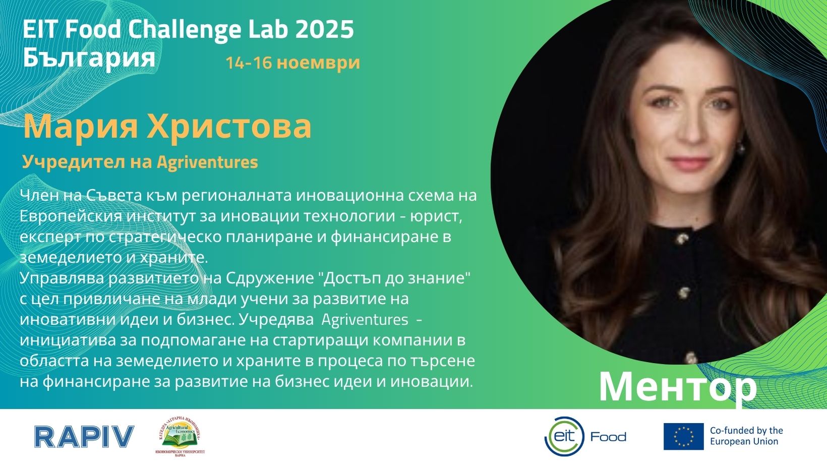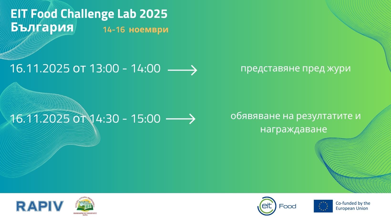 On 14-16 November 2025 Regional Agency for Entrepreneurship and Innovations - Varna (RAPIV) in collaboration with the Universityof Economics - Varna is organising The EIT Food Challenge Lab aims to support entrepreneurs in developing ideas for new, innovative products, services, and technological solutions to address the real challenges faced by the agrifood sector. The event is held in the form of a two-day hackathon, bringing together different groups of people (students, entrepreneurs, startups, and experts in the fields of food technology, nutrition, biotechnology, marketing, management, information technology, psychology, etc.). It supports building of partnerships between industry, academia, and startups to solve real business cases.